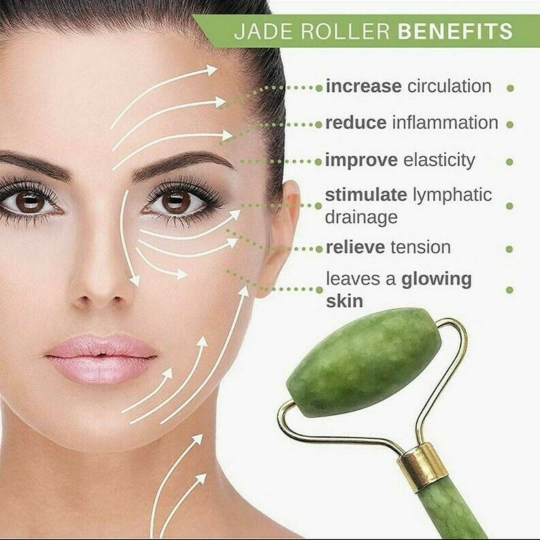 Jade rollers have been a part of Chinese beauty rituals and face treatments for centuries. the roller was made from natural jade. it helps improve blood circulation, skin tone, the elasticity of the skin, and lymphatic drainage. It also reduces puffiness, wrinkles, dark under-eye circles, and eliminates toxins.