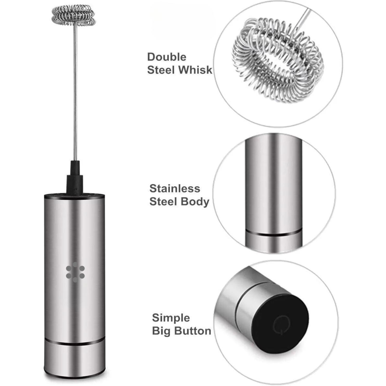 - DURABLE AND SAFEST COFFEE FROTHER The whole body of N1 battery-operated handheld coffee frother is made of food-grade) stainless steel, as well as the double steel whisk. The stainless steel design will also keep the coffee frother clean.